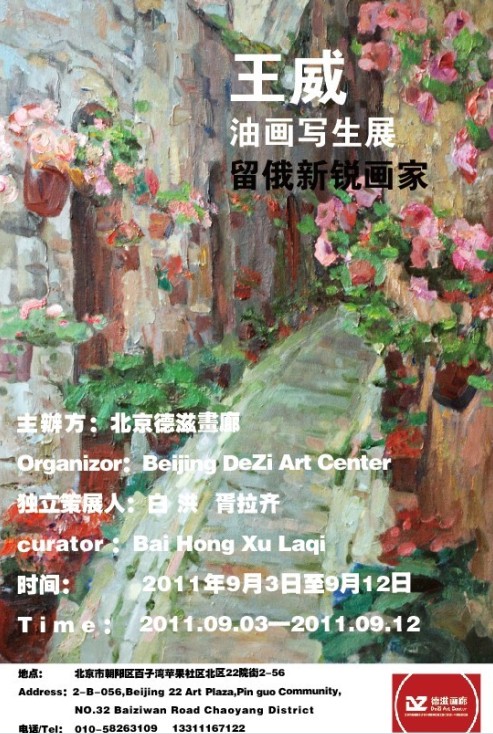 留俄青年画家王威个人油画写生展即将在百子湾苹果社区的德滋画廊展出,时间为2011年9月3日~12日,此次展出的作品大约在30幅左右,都是王威近两年来的写生创作。