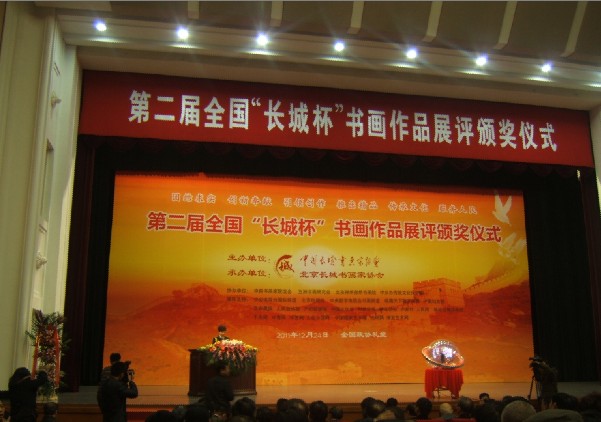 12月24日下午,由中国长城书画家协会主办的第二届全国“长城杯”书画作品展评颁奖仪式在北京全国政协礼堂举行,这是汇集全国优秀书画创作成果迎接新年的一份厚礼。本次展评活动对推动中国文化艺术大发展大繁荣,促进中国书画艺术交流,传承和发扬中国优秀文化传统具有十分重要的意义。