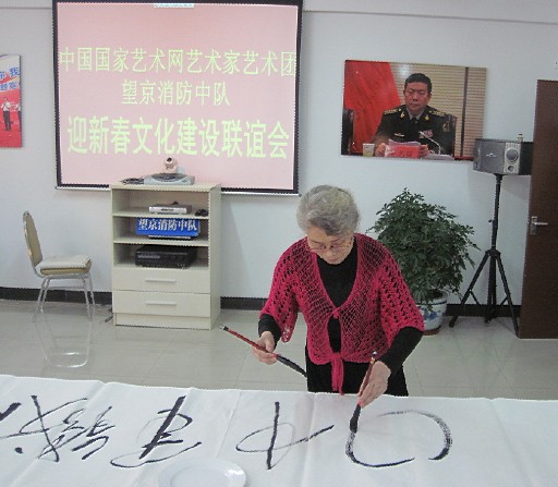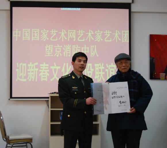 2012年1月14日,以粉画泰斗李铁树教授领衔的、中国国家艺术网组织的艺术家艺术团一行8人,来到北京市朝阳区望京消防中队,为消防官兵送去新年的祝福,创作春联。