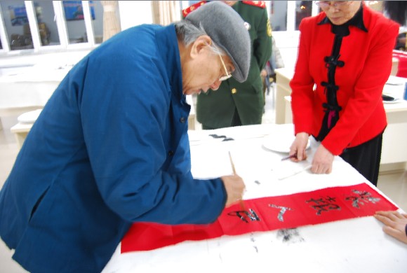 粉画泰斗李铁树教授在为官兵们书写春联