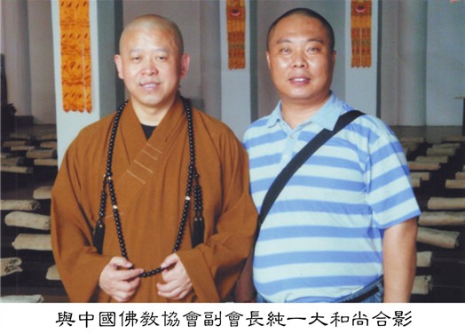 他在学习佛法的同时,不断吸取佛法精髓,在弘扬佛教文化和音乐创作的道路上付出了一番艰辛。自皈依佛门以来, 经常参加国家和省市级佛协的大型佛事活动,以及海峡两岸的大型弘法募捐活动。为发挥自身艺术特长,在大连市佛教协会副会长释义辉法师的倡导下,又筹备和组建了大连市佛教协会——海潮音合唱团。在此期间也分别创作出许多优秀的佛教音乐作品,如《阿弥陀佛在心中》、《南无观世音菩萨》、《大爱永恒》、《九霄银河祥云漫天》、《神韵梵音》、《世间万物皆源生》、《禅心道缘》、《观海》等作品。