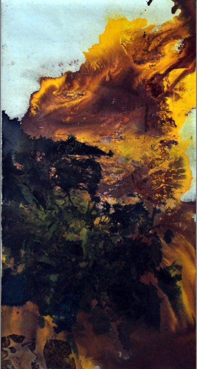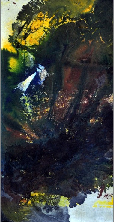 郑忠的后抽象水墨不是空穴来风,而是有着很厚的生活底蕴。他曾是一名海军,作为南海舰队的一名潜水员,他的特殊职业使他有机会近距离地接触大海,大海的浩瀚飘渺、汹涌澎湃和海底世界的璀璨多姿、瞬息万变、五光十色、奇妙无比使他深刻地感悟出人生的真谛和艺术的本质。从海军复员以后,他先后于南通大学美术学院、中央美院深造,起初他专攻版画并取得优异成绩,后来又转向水墨画创作,同样做得风生水起。这种独特的生活经历与艺术生涯为他进行后抽象水墨艺术创作提供了颇具个性结构与独立人格的艺术灵感。郑忠在本质上是一个行吟的诗人,他用这样的诗句描绘自己的创作状态:“在白昼的山阴道上,光影与风声共舞,时间在空间漫步,水韵在宇内弥散,就好像荷马的诗篇,轻轻地来……轻轻地去……我的心灵像是一个难以名状的乐器,被无形的手指轻弹!时而滔滔汨汨,时而低吟浅唱,时而澎湃激越一泻千里,时而轻拢复挑九曲十八涧,如影随行暗唱天光振颤,共渡弱水三千!远处传来空谷之音,一曲神秘的歌谣,掠过星星点点的圣光,掠过水墨的涟漪,掠过海洋、岛屿、峡谷、河床、沙滩……云青青兮欲雨,水淡淡兮生烟……天际处、征程上……飘过一骑征夫的信天游!”