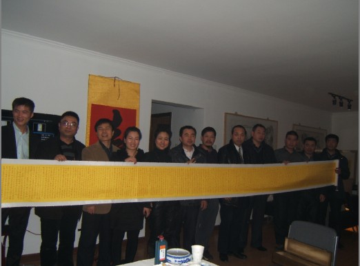 部分嘉宾在杨复新朱砂创作的《金刚经》前合影留念2