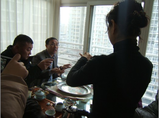 嘉宾在倾听鉴赏家陈建初精彩点评古董