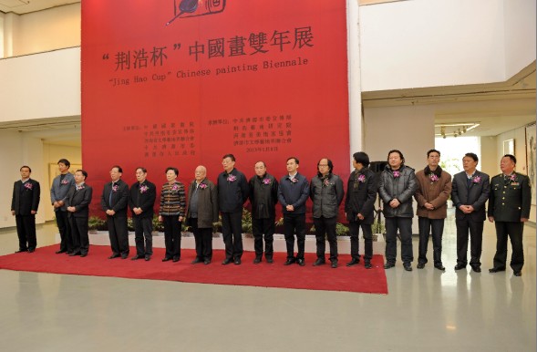中国国家艺术网讯(钟文 报道):新年伊始,万象更新。1月8日,“荆浩杯”中国画双年展在北京中国国家画院美术馆隆重开幕。全国妇联原党组书记、副主席、书记处第一书记黄晴宜,全国政协民族宗教委原主任、安徽省委原书记、宁夏自治区原书记黄璜,第二军医大学原政委傅翠和,第十一届全国政协常委、九三学社中央副主席赖明,中国国家画院院长、中国美协副主席杨晓阳,荆浩艺术研究院理事长、河南省委组织部原常务副部长王笑南,中国国家画院常务副院长、荆浩艺术研究院院长卢禹舜,中国国家画院副院长张晓凌,河南省委宣传部副部长李庚香,河南省文联副主席、荆浩艺术研究院副院长张剑锋,河南省济源市委书记何雄,济源市人民政府市长王宇燕,济源市政协主席宋万轩,济源市委常委、宣传部部长李军星,济源市委常委、市人武部政委吕伟等领导同志出席了开幕式。
