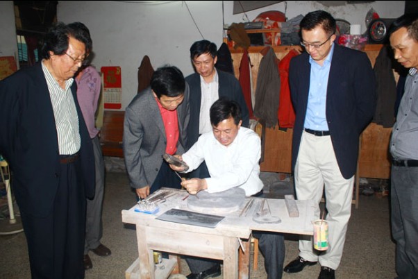 “开工仪式”当天,该砚创作团队邀请了广东省砚文化研究基地主任、肇庆学院教授骆礼刚,中国工艺美术大师黎铿,中华砚文化产业研究院院长于江,安泰盘实股权投资有限公司总裁蓬钢,中华砚文化产业研究院副院长、意门国际美术馆馆长黄中,肇庆市工艺美术行业协会副会长兼秘书长赵桂炎、端砚协会副会长麦伟光,肇庆市聚砚斋文化传播有限公司董事长陈周英、总经理邹瑞权,肇庆市书协副会长兼秘书长李刚等工艺美术界、文化界的专家学者、各界精英对该砚的创作设计、艺术理念、宣传推广、市场运作等一系列工作进行了研讨。