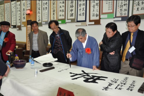 82岁的甘肃籍著名书画家张劲夫、河南籍著名书法家张茂华、韩国碑林协会会长金善源都在现场挥笔泼墨,赢得了赞许的掌声。活动期间,华夏张氏书画院名誉院长荆利斌和中国国际书画艺术协会主席张世芝女士都致以热情洋溢的欢迎词。