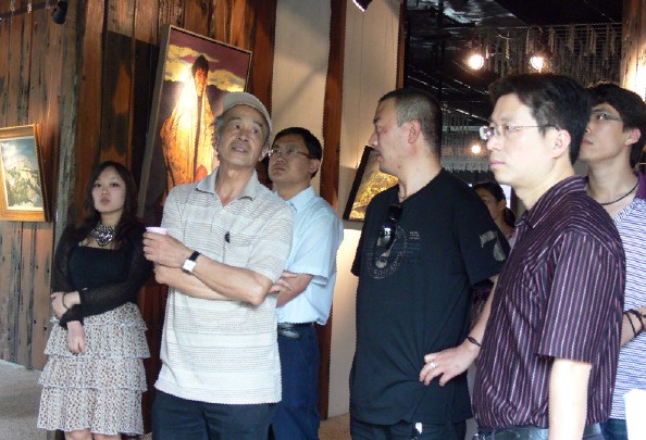 中国美协理事、连环画艺委会主任、北京美协副主席沈尧伊教授(左二)参观画展