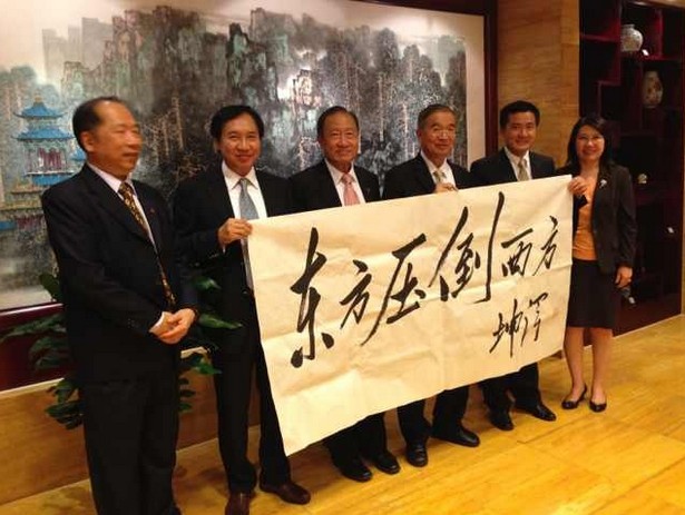 我国著名书法家李坤泽应泰国前国会主席兼下议院院长颇钦·蓬拉军邀请,书写“东方压倒西方”书法作品,并于日前进行了交接。
