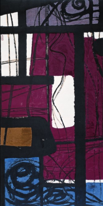 周韶华作品-大漠浩歌——这里不是梦 纸本水墨 247cm×123cm 2000年 中国美术馆藏