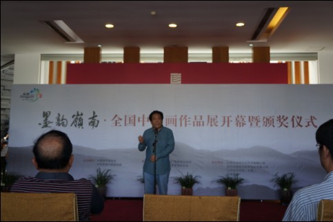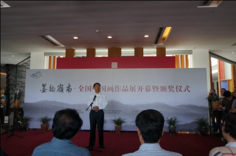 中国国家艺术网讯(钟文 报道):10月15日上午,“墨韵岭南·全国中国画作品展”开幕式在广东东莞岭南美术馆隆重举行。此次展览由中国美术家协会和中共东莞市委宣传部共同主办,展出从全国各地近4000幅参选作品中评选出来的300幅精品佳作,包括54幅优秀作品、246幅入选作品。此次展出作品涵盖人物、山水、花鸟等各种题材。