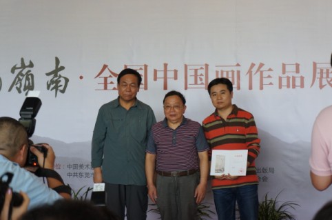 广东省文联主席刘斯奋(中)为入选作者李志国(右)等颁发入选证书