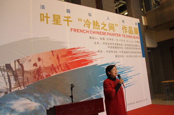 中国国家艺术网讯(钟文 报道):深秋的北京略带一丝凉意,由中国文学艺术基金会、文化部艺术发展中心、中国收藏家协会、法国当代艺术家协会共同主办,中国书法院、艺术品保护与开发专项基金共同承办的“冷热之间”——法籍华人画家叶星千作品展于11月2日下午在北京国粹苑中国艺术研究院中国书法院展览馆如期拉开帷幕,来至全国各地的朋友和国际友人在这里共同祝贺这位旅居法国32年的朋友此次精彩亮相于北京。此次共展出叶星千先生近几年来所创作的抽象油画和抽象水墨作品80余件,本次画展由彭锋、 DI PIZIO Olivier(法国)、方书华、刘勇良共同策划,展览将持续到11月20日。