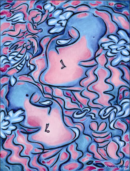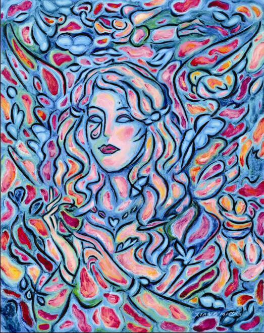 Objectively, if an artwork is composed sincerely, it shows the autobiography of the artist, telling his own experience, his lifestyle and his manner of thought. So is Ye Xiangming’s. The depressed and dejected themes of his Blue Tone Series showed the grief of his inner heart, while it became peaceful, the Blue Tone Series of artworks also look unruffled. Noteworthily, the faintly visible heart, flower and small angel are Ye Xiangming’s expression of individual emotion. The dreamy purity and the calmness is a kind of denial and avoidance to the world of adults. As the detached attitude of his composition, there is a kind of recurrence to natural instincts of human being.
