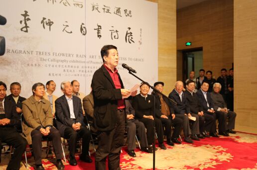 原全国政协副主席、原民盟中央副主席张梅颖,中国人民解放军原副总参谋长葛振峰,原文化部常务副部长、原中国文联党组书记高占祥,中宣部文艺局局长汤恒,原中国文联副主席胡珍,中国书协主席张海,中国书协分党组书记、驻会副主席兼秘书长陈洪武,中国书协副主席苏士澍、聂成文,中国美协副主席、中国美术馆馆长吴为山等领导和嘉宾,以及来自辽宁的书法家代表出席展览开幕式。