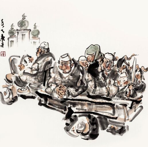 李东星的画充满了一种家园般的温情和敬意。其创作的大量的民俗风情类人物画,表现形式粗砺夸张,洋溢着快意而浑朴的气质,富有强烈的视觉冲击和深刻的艺术感染力;写意小品灵动自在,意境超然,洋溢着热情、放达、自然之性情,读来痛快而酣畅。