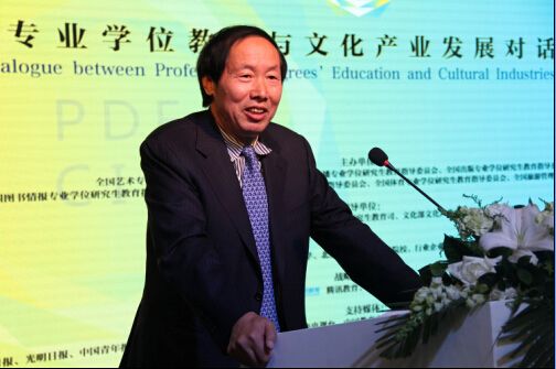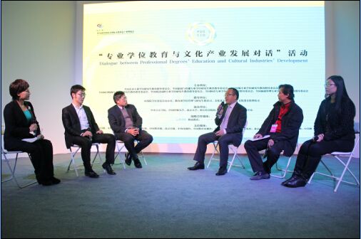 专业学位是针对社会特定职业领域的需要,培养具有较强的专业能力和职业素养、能够创造性地从事实际工作的高层次应用型专门人才而设置的一种学位类型。专业学位与相应的学术学位处于同一层次,培养规格各有侧重。目前,我国已基本形成了以硕士学位为主,博士、硕士、学士三个学位层次并存的专业学位教育体系。此次对话活动旨在深入贯彻党的十八大、三中四中全会精神,全面落实全国研究生教育工作会议要求,通过“第九届中国北京国际文化创意产业博览会”这一契机,搭建起专业学位培养院校与文化产业交流对话平台,以此加强培养院校与行业企业间的交流、合作,积极探索适合我国文化产业发展需求的高层次应用型专业人才的培养路径。