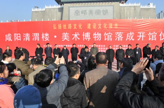 清渭楼美术博物馆馆长郭峰在致辞中表示,清渭楼美术博物馆的建设得到了国家文化部、省、市各级政府和各位领导以及社会各界的高度重视和大力支持。在工程建设期间,中共咸阳市委姜锋书记、咸阳市人民政府卫华市长等领导先后多次带领有关部门深入美术馆考察调研、协调解决工程建设所遇到的困难和问题。清渭楼美术博物馆试运行一年来,全国政协领导、国家文化部、国家发改委、省委省政府以及省文化厅、省文联、省美协、省文物旅游局等多位领导先后莅临美术馆考察指导,国家文化部、省文化厅已确定我馆为2016年全国文化艺术节书画展的主展馆。