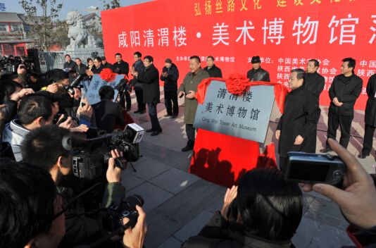中编办原副主任、中国行政管理学会会长王澜明,国家工商行政管理总局原副局长韩新民,省贸促会会长赵润民,市人大常委会副主任党新安,市政协副主席赵昌华及文化界名家中国国家画院国画院副院长范扬、中国美术家协会副主席尼玛泽仁等出席开馆仪式。文化部法规司司长饶权,省十届人大常委会副主任邓理,省政协原副主席刘石民为清渭楼、清渭楼美术博物馆揭牌。咸阳市委常委、宣传部部长马俊民讲话,清渭楼美术博物馆馆长郭峰致辞,此次开馆仪式由咸阳市副市长孙亚政主持。