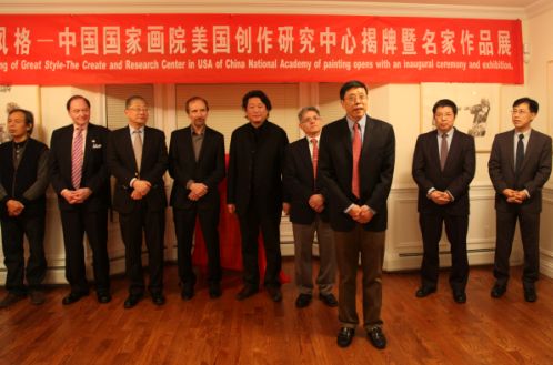 中国国家艺术网讯:纽约时间2015年1月15日,“中国国家画院美国创作研究中心揭牌活动”在纽约举行。与揭牌活动同时还展出了“中国风格-中国国家画院名家作品展”,展览展出了杨晓阳、张江舟、张立柱、邢少臣的30余件中国画作品。此次活动由中国国家画院 、美国中国文化艺术基金会主办,中国国家画院美国创作硏究中心、金泓文化(美国)发展有限公司承办,中国驻纽约总领馆支持。
