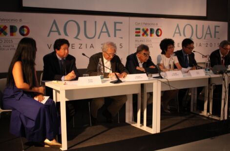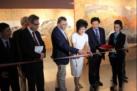 开幕式,主席台从左至右:全国政协常委、国家民族画院院长、中央民族大学副校长王林旭,米兰世博会艺术总监Davide Rampello,威尼斯世博总经理Giuseppe Mateazi,中国驻米兰总领事王冬。
