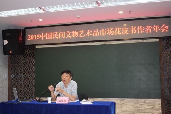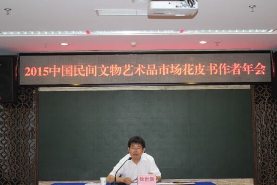 中国国家艺术网讯:8月26-27日,为期两天的2015《中国民间文物艺术品市场花皮书》作者年会在北京隆重举行。来自北京、浙江、湖北、福建、上海、河南等地古玩艺术品市场的负责人,全国工商联民间文物艺术品商会下属各专业委员会、研究会相关负责人,以及中国古玩研究院、中国国家艺术网负责人出席了年会并发言。