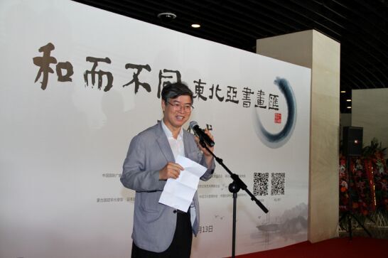 合作单位代表、中国文化管理协会副秘书长、北京当代艺术研修学院书记兼副院长牛亮对此次书画汇的意义做了深度的诠释。他表示,此次书画汇以“和而不同”为主题,以书法与绘画这样的人类相通的艺术表现形式为载体,为东北亚五国艺术家们搭建了展现各自艺术造诣和创作成果的舞台。