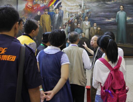 吴厚信:是的,这幅画完全冲破了传统绘画的焦点透视,时空一律的束缚,电影的思维、电影的运动感、电影的空间连续性与镜头的移动、蒙太奇的跳转和銜接,都成为我的绘画语言,一百多年的历史事件和历史人物非常繁杂,我必须主次分明,详略有序地展现在观众面前,我力求做到历史时空与场景,情节及人物形象与情绪,有机自然流畅地转折与延伸,使画面既有气势磅礴的大场面又有精致的细节处理,一切都融入统一又有变化的巨幅图画中,让观者沿着历史的轨迹一段一段地阅读史实,认识人物。灵活的电影思维成为这幅油画长卷独特语言,这得益我长年的电影生涯同时又终生钟情于绘画。