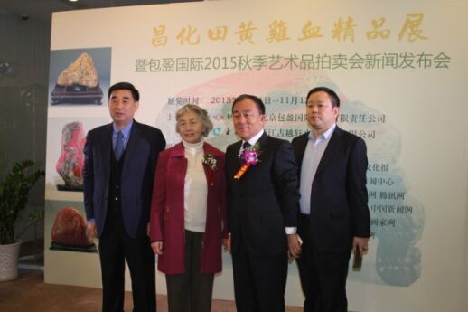 中国国家艺术网讯(钟文 报道):11月1日上午,由北京包盈国际拍卖责任有限公司与浙江古越轩文化发展有限公司共同举办的“昌化田黄鸡血精品展”在包商银行二楼展示厅举行,一百余件昌化田黄鸡血精品雕件惊艳亮相,来自全国各地企业界、收藏界和文化界的百余位嘉宾云集锐创大厦,共同见证展览的开展,并为11月15日举行的“包盈国际2015秋季艺术品拍卖会”预热。