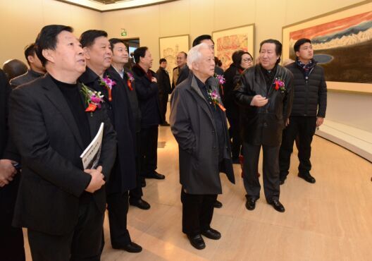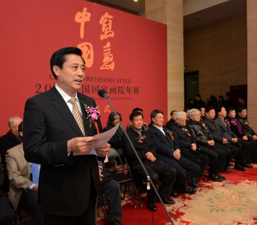 文化部党组成员、副部长董伟,中国美术家协会主席刘大为,老艺术家代表谢志高、杜大恺,中国国家画院院长杨晓阳先后致辞。周铁农、陈宗兴、蔡武、陈存根、赵少华、覃志刚、丁伟、吕章申、刘勃舒、袁运甫、詹建俊为开幕式剪彩。中国国家副院长赵卫向大家介绍了出席开幕式的全国人大、全国政协、文化部、中国文联、中国美协等相关部门领导和嘉宾。开幕式由中国国家画院常务副院长卢禹舜主持。
