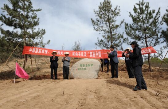中国国家艺术网讯(张婷婷 报道):延安是中国革命圣地,也是承载海内外中华儿女寻根祭祖的民族寄托之地,更是中国文艺工作者的精神家园。4月21日,中国美术家协会主席刘大为,中国国家画院院长杨晓阳、副院长张江舟、创作研究部主任何加林,中国国家画院艺术信息中心主任、《中国美术报》执行总编王平,中国国家画院办公室主任乔宜男、美术馆馆长陈风新、国画院副院长于文江,西安美术学院副院长姜怡翔,中国国家画院研究员张立柱、陈钰铭、李晓军、胡秋萍、魏广君等与《中国美术报》社团队一起到延安这个“文艺老家”采风写生,在延安万花山同延安美协的画家,新新双语小学、杨家砭小学的百名留守儿童及万花乡的村民们一起开展了“美丽中国——十年树木,百年树人”主题植树活动,在万花山上种下一片“中国画家林”。随着刘大为、杨晓阳、王青山、石兴平为刻有“中国画家林”的石碑揭幕,活动正式开始。