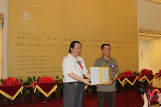 中国国家画院院长杨晓阳向参展画家颁发证书