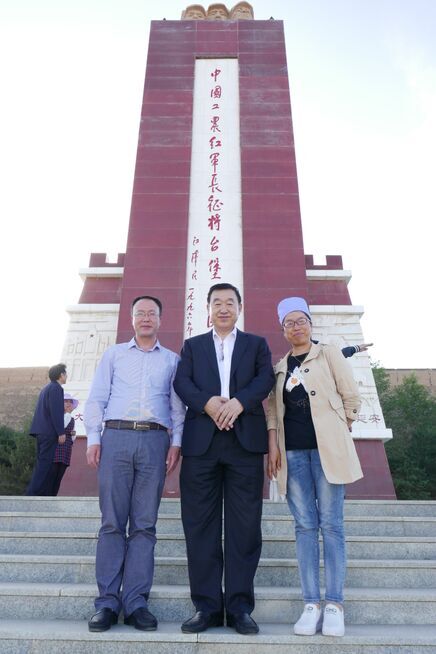 在宁夏西吉县采风期间,张保和在将台堡红军长征会师纪念碑下留念