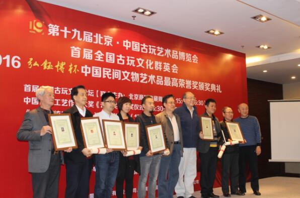 此外,首届全国古玩文化群英会暨首届古玩文化论坛,是第十九届北京中国古玩艺术品博览会的重要活动之一,博览会颁奖典礼随后举行。中华文化交流与合作促进会理事长、全国工商联原常务副主席孙安民、全国工商联原副主席宋北杉、北京弘钰博古玩城董事长兼总经理张树科以及古玩界知名人士、全联民间文物艺术品商会副会长、中国古玩研究院副院长出席并颁奖。