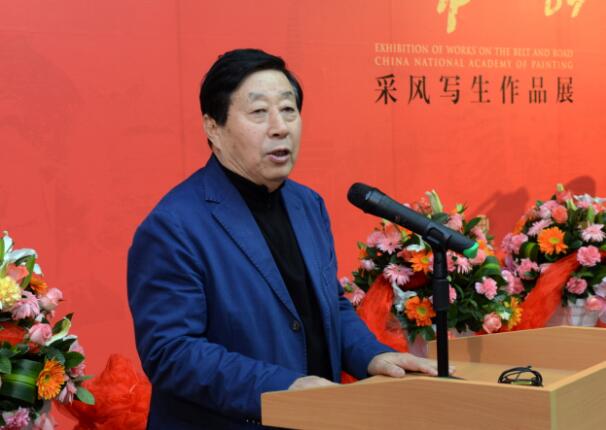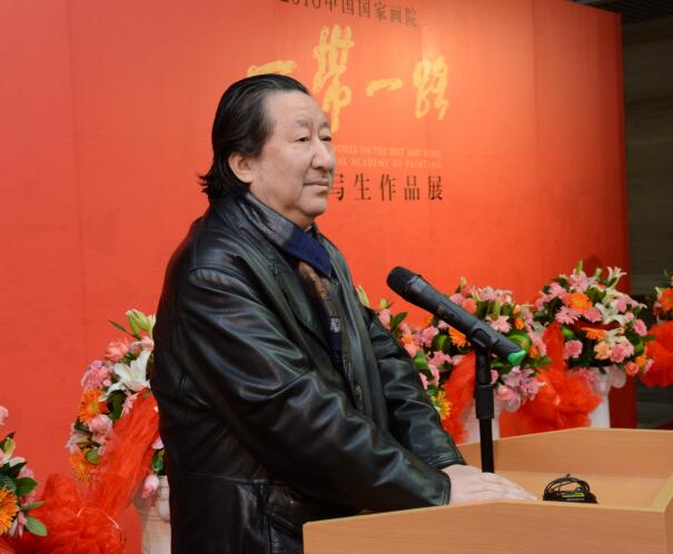 姜宝林代表参展艺术家致辞,他说:“‘一带一路’是国家层面的战略方针,作为艺术家能够参与到其中感到非常荣幸。国家画院在组织过程中措施得力,积极引导艺术家面向生活、深入人民,并在创作中给予艺术家最大限度的信任。”俊安集团副董事长曹书经也在致辞中感谢文化产业发展大发展时期,国家画院对其所作出的支持和贡献。