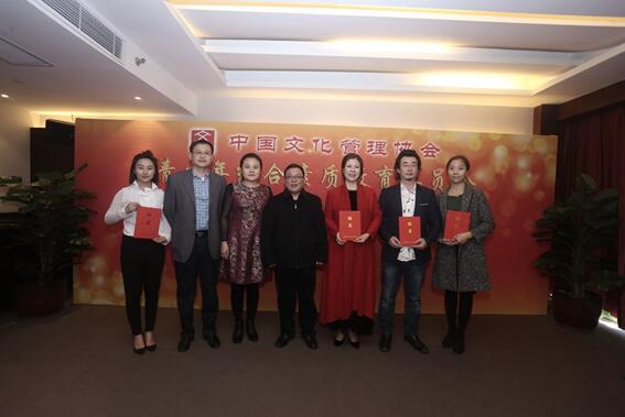 中国文化管理协会秘书长崔丽丽女士为委员会负责同志姚丽、冯晓娟、王亚玲、韩建东等颁发聘书